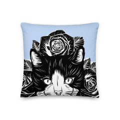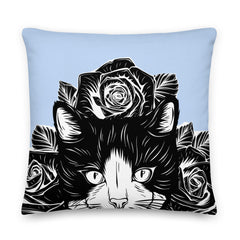 PILLOW - DESIGN BOTH SIDES/WASHABLE CASE - BLUE - CAT - AHOE