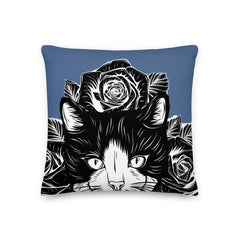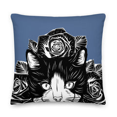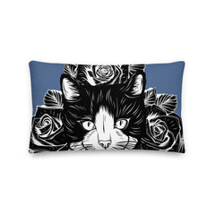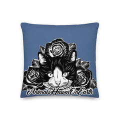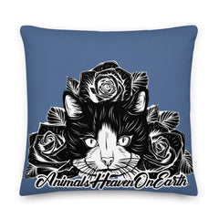 PILLOW - DESIGN BOTH SIDES/WASHABLE CASE - BLUE - CAT - AHOE