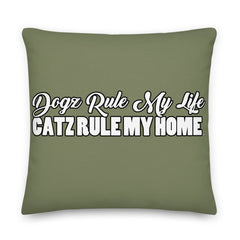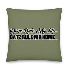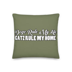 PILLOW - DESIGN BOTH SIDES/WASHABLE CASE - GREEN - DOG(Z)/CAT(Z)