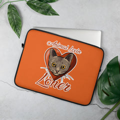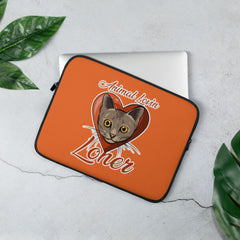 LAPTOP SLEEVE - 13" & 15" TWO SLIDERS/FAUX FUR LINED - ORANGE - CAT - ALLoner
