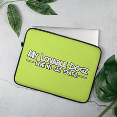 LAPTOP SLEEVE - 13" & 15" TWO SLIDERS/FAUX FUR LINED - LIME GREEN - DOGZ IN CAT SUITZ