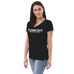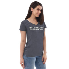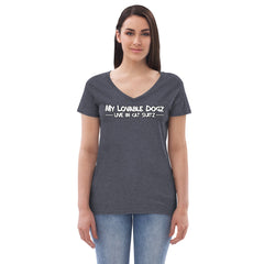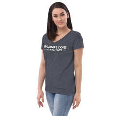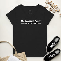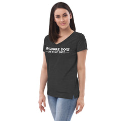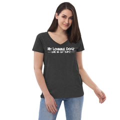 WOMEN'S SHORT SLEEVE V-NECK SHIRT- RELAXED FIT - GREY/BLACK - DOGZ IN CAT SUITZ