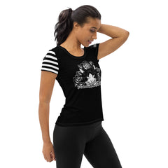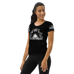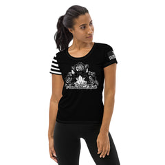 WOMEN'S ATHLETIC T-SHIRT/USA FLAG ON SLEEVE - AHOE