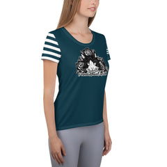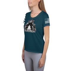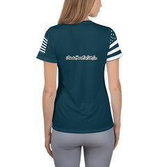 WOMEN'S ATHLETIC T-SHIRT/USA FLAG ON SLEEVE - AHOE