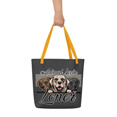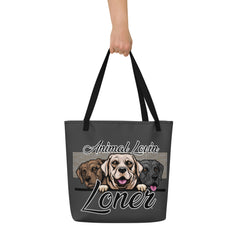 BEACH BAG W/ LARGE INSIDE POCKET - DARK/GREY - DOG - ALLoner