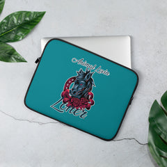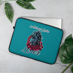 LAPTOP SLEEVE - 13" & 15" TWO SLIDERS/FAUX FUR LINED - BLUE/GREEN - HORSE - ALLoner