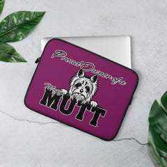 LAPTOP SLEEVE - 13" & 15" TWO SLIDERS/FAUX FUR LINED - PURPLE/PINK - DOG - POOAMM