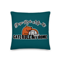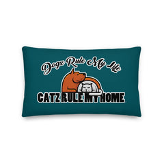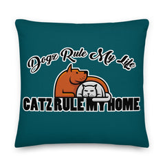 PILLOW - DESIGN BOTH SIDES/WASHABLE CASE - BLUE/GREEN - DOG(Z)/CAT(Z)