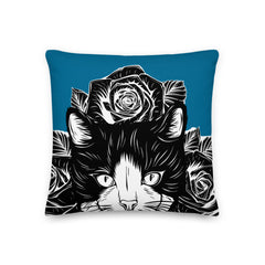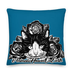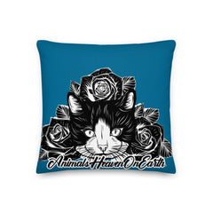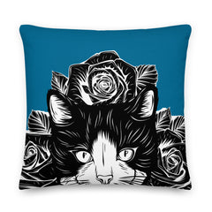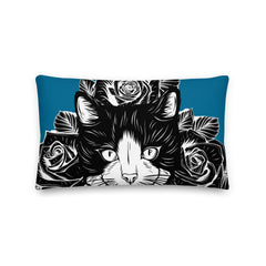 PILLOW - DESIGN BOTH SIDES/WASHABLE CASE - BLUE - CAT - AHOE