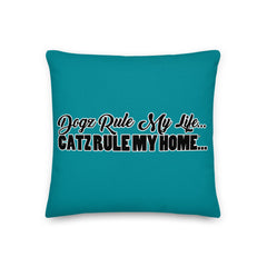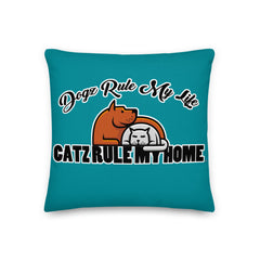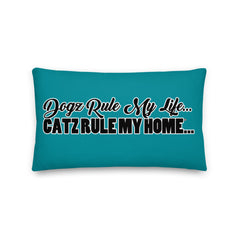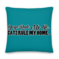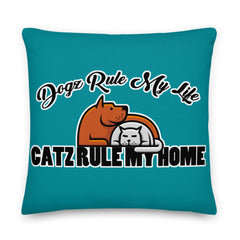 PILLOW - DESIGN BOTH SIDES/WASHABLE CASE - BLUE/GREEN - DOG(Z)/CAT(Z)
