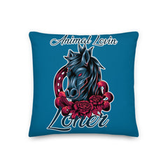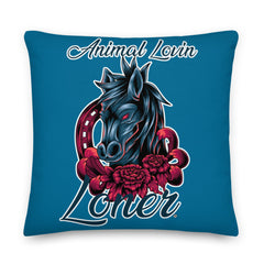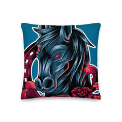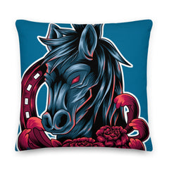 PILLOW - DESIGN BOTH SIDES/WASHABLE CASE - BLUE - HORSE - ALLoner