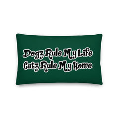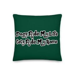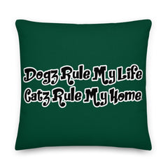 PILLOW - DESIGN BOTH SIDES/WASHABLE CASE - GREEN - DOG(Z) IN CAT SUIT(Z)