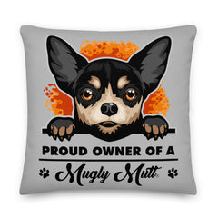 PILLOW - DESIGN BOTH SIDES/WASHABLE CASE - GREY - DOG - POOAMM